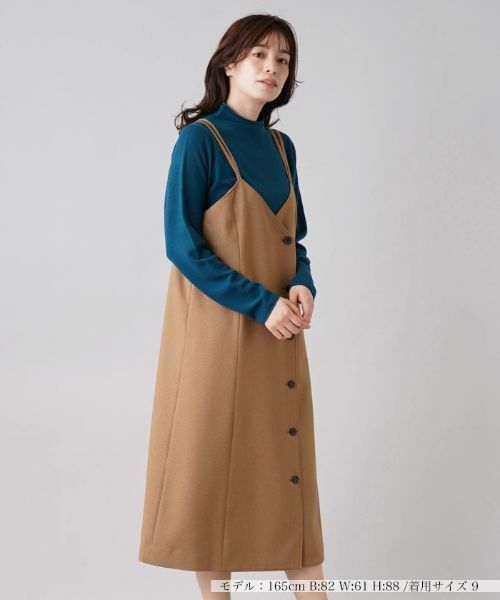華奢なダブルストラップをあしらった、大人可愛いルックスのジャンパースカート。緩やかに広がりをもたせたAラインシルエットが大人の女性らしさを演出。フロントの内側には3つのボタンを配しており、しっかりと閉じられます。薄手のニットやカットソーなどをインして、アレンジを楽しみたくなるアイテムです。(ストラップは長さ調整不可。)