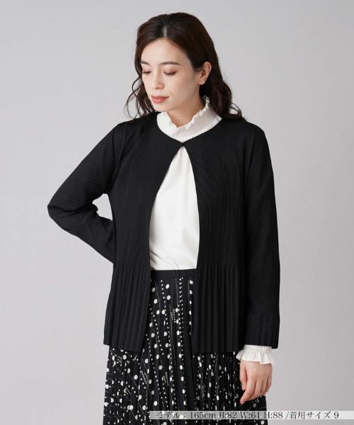 細やかなリブを基調に、袖や裾周りは自然なドレープでエレガントさを表現した上品な印象のカーディガン。ネック中央を1つボタンで留めるタイプなので、軽やかな雰囲気でスタイリングできます。薄手で着心地もよく、シックなカラーリングのアイテムはさらっと羽織るのに便利です。