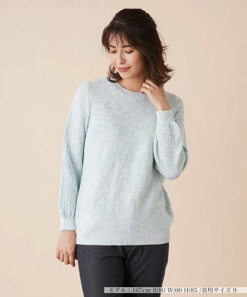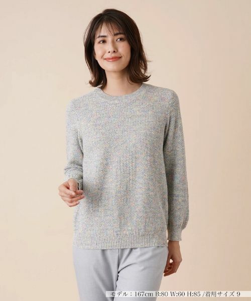 メランジが独特な表情を作り出す、ミックスカラーヤーンのニットプルオーバー。余計な装飾のないシンプルなデザインでありながら、絶妙なニュアンス漂う仕上がりに。袖と身頃に程よくゆとりをもたせ、リラクシーな着心地を叶えました。コットンをベースに編み込んだ軽やかな素材感でボトムスとも合わせやすく、ロングシーズン活躍してくれそうなトップスです。------------------------------------着用シーズン:春伸縮性:あり透け感:なしポケット:なし生地の厚さ:やや厚手裏地:なし-------------------------------------※商品の色味は、撮影場所や光のあたり具合、お客様のお使いの機器などにより色味が違って見える場合がございます。予めご了承の上ご注文下さい。※定価(税込)は、2023年06月29日のセール開始前の店舗における販売価格です。家庭洗濯不可漂白不可タンブル乾燥不可アイロン低温160℃までドライクリーニング可ウェットクリーニング不可