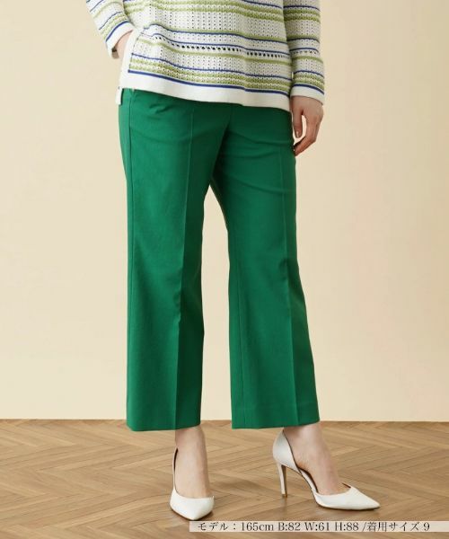 レッグラインを拾わないセミワイドのストレートシルエットで、気になる部分をカバーしつつも旬なスタイリングを叶えてくれるアンクルパンツ。フロントウエストをすっきり仕上げ、センタープレスを施したキレイめデザインだから、きちんと感を要する場面でも活躍します。スナップボタン&ホック&ファスナーにより開閉が可能。バックポケットは飾りポケットとなっています。