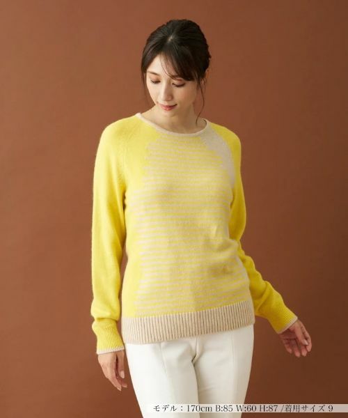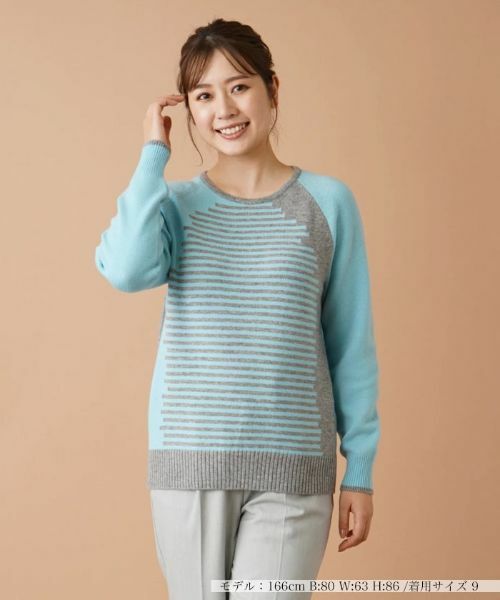 東洋紡糸の糸を使用した、毛100%のニットプルオーバー。ランダムな変形ボーダーとカラーブロック柄の組み合わせが新鮮さを感じさせる一枚。クルーネックですっきりとヘルシーな印象に仕上げつつ、袖はラグランスリーブで肩肘張らないリラクシーな着心地を叶えました。シンプルなボトムスを合わせるだけで、ひと味違った旬のコーディネートが楽しめます。