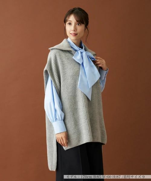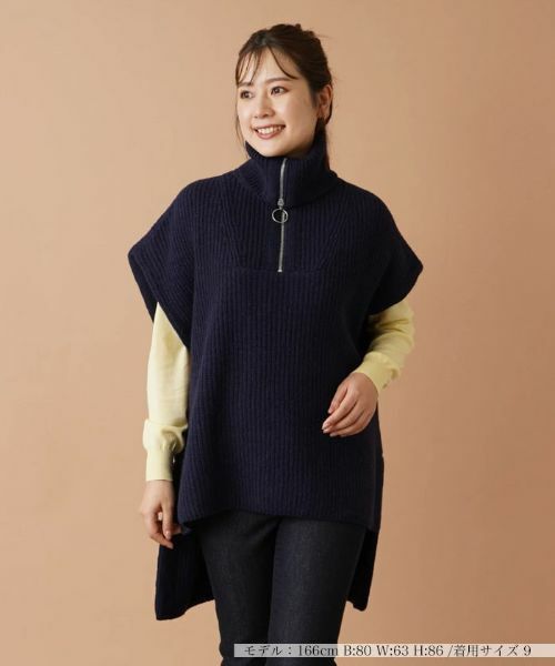 ゆったりとしたオーバーシルエットのニットジレ。ミドルゲージの片畦編みで仕上げたソフトな肌触りが特徴。フロントはスムーズに着脱できるハーフジップ仕様となっており、ファスナー引き手のチャームリングがポイント。ジッパーを上下することで襟型のアレンジも楽しめます。ヘムラインはサイドスリットを入れて前後差をつけ、さりげなく変化を生み出しています。ボトムスは細身のパンツでまとめると好バランスなコーディネートに。
