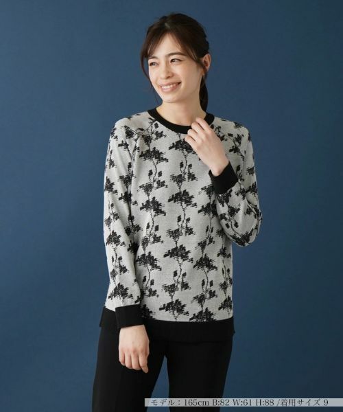 これからの季節らしいオブスキュアなボタニカル柄が落とし込まれたニットプルオーバー。アウトラインをシックな配色で引き締めることで全体をバランスよくまとめています。落ち着いた色合いとすっきりとしたシルエットでアウターやボトムスともコーディネートしやすく、着回し力に優れているのも嬉しいポイント。コットンをブレンドしてハイゲージで丁寧に編み込んだ、軽やかな風合いのニットでさらりと着こなせるトップスです。