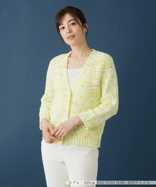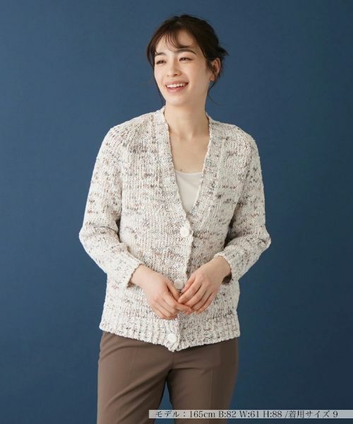 ミックスカラーのニュアンスが際立つカーディガン。一点投入するだけでこれからの季節のコーディネートに深みを与え、洒脱感をアップデートしてくれそうです。やや厚手のローゲージニットが優しい温もりを伝え、快適な着心地を提供します。ニットやカットソーといったインナーとも調和し、ワンランク上のレイヤードスタイルを演出。シーズンシフトにサッと羽織れるカーディガンはワードローブに必須のアイテムです。フロントはスナップボタン開閉が可能。