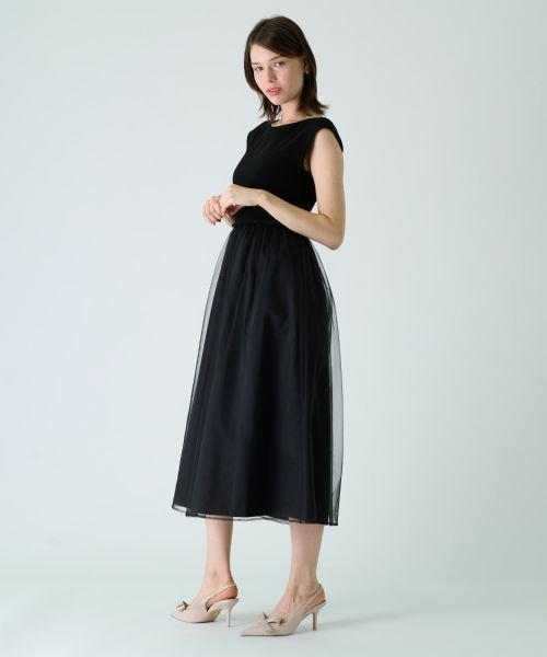 スカート部分に重ねたふわふわチュールが、動きに合わせてロマンティックに弾むロングワンピース。すっきりと開いたボートネックが、鎖骨周りを気品たっぷりにまとめます。アクセサリーや小物を添えれば、オケージョンにもぴったり。※セットアップ対応商品【ブレザー:0400146】【ジャケット:0401050】------------------------------------着用シーズン:初夏伸縮性:なし透け感:なしポケット:なし生地の厚さ:やや厚手裏地:ありウエスト:伸縮性なし-------------------------------------※商品の色味は、撮影場所や光のあたり具合、お客様のお使いの機器により色味が違って見える場合がございます。予めご了承ください。※定価(税込)は、2024年6月28日のセール開始前の店舗における販売価格です。家庭洗濯不可漂白不可タンブル乾燥不可アイロン低温120℃まで石油系溶剤ドライクリーニング弱ウェットクリーニング不可