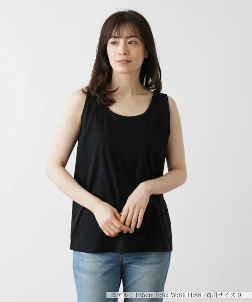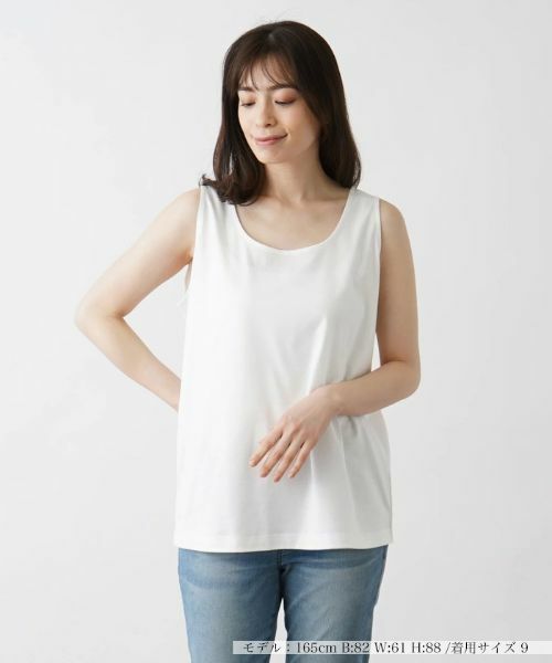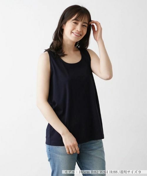 薄手の滑らかな生地の風合いが美しいノースリーブカットソー。コットン100%の軽やかな生地を使用した、着心地の良さが魅力のアイテムです。シアーなブラウスやカーディガンなどのインナーに活躍してくれるはず。