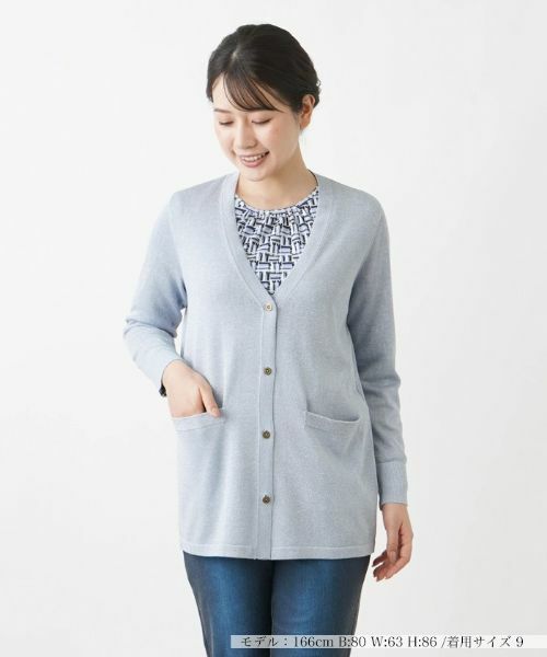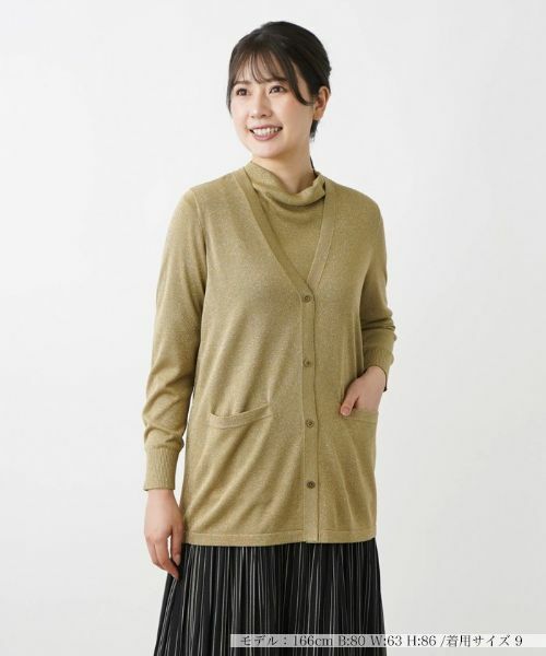 繊細な細番手で編まれたラメ入りのロングカーディガン。裏側はラメが当たりにくくしているので肌触りがよく、ラメが繊細に表現されています。しなやかなとろみと光沢のある素材感と、深めのVネックが上品な初秋向けのカーディガンです。------------------------------------着用シーズン:秋伸縮性:あり透け感:ありポケット:あり生地の厚さ:やや薄手-------------------------------------※商品の色味は、撮影場所や光のあたり具合、お客様のお使いの機器により色味が違って見える場合がございます。予めご了承ください。家庭洗濯不可漂白不可タンブル乾燥不可アイロン低温160℃まで石油系溶剤ドライクリーニング弱ウェットクリーニング不可