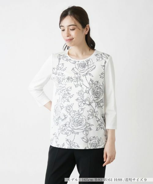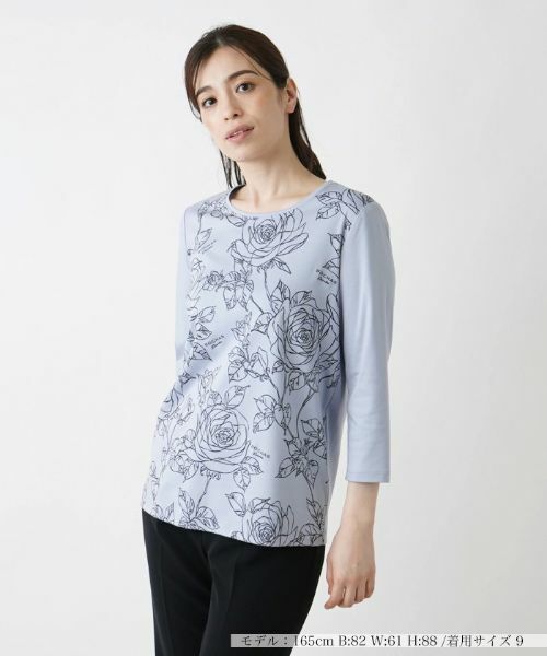 フロント部分に手描きタッチで表現したフラワー柄のプリントが瀟洒な雰囲気を漂わせるカットソー。ネックラインはすっきりと開きをもたせており、クロップドスリーブが軽快な印象のスタイリングを作り出します。やや薄手の爽やかな風合いのコットン生地を使い、快適な着心地を叶えました。定番のパンツルックはもちろん、フェミニンなスカートとのコーディネートにもおすすめのアイテムです。