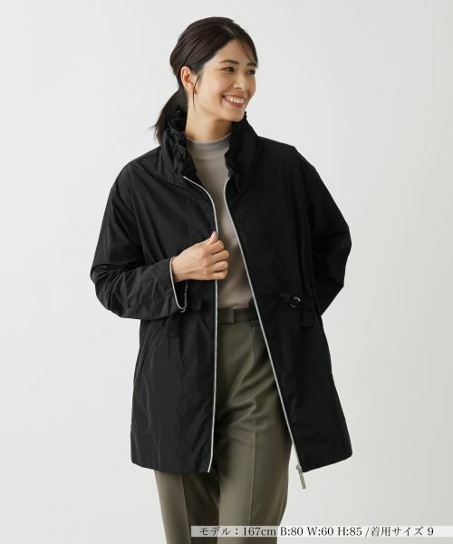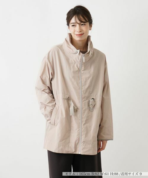 ドローコードによりくしゅっとさせてアレンジできる、ユニークなスタンドカラーが特徴のショートコート。ドロップショルダーで程よくゆとりをもたせ、リラクシーな着心地を実現しています。フロントは首元までしっかりと閉じられるフルジップ仕様で防風性を高めました。身体のラインを拾いにくく、ヒップまで隠れる丈感なのでナチュラルに体型カバーできるのも嬉しいポイント。ウエストは内側のドローコードにより調整が可能。