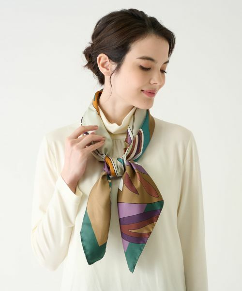 1945年にコモで設立されたLARIO SETA(ラリオセタ)は、独自のデザインと高い創造性を持つスカーフやストールなどのファッションアクセサリーを製造しています。「メイド・イン・イタリー」に拘り、技術とセンスが認められ、海外のラグジュアリーブランドのOEMも手がけています。植物柄を幾何学調にアレンジした図案にイタリアならではの美しく、モダンな配色で表現した大判のスカーフです。洋服のカラーにコーディネイトしやすく、大判なので巻き方やアレンジを楽しむことができます。