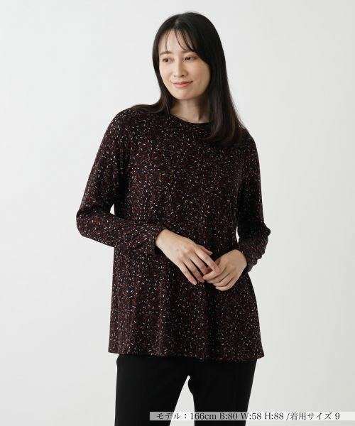 季節感溢れるボタニカル柄が彩るカットソー。鮮やかなプリントがコーディネートに華やかさを添え、シーズンムードを演出。裾周りはふわりと広がるフレアシルエットで、優雅さと軽やかさを兼ね備えたデザインに。身体のラインを拾いにくく、リラックス感がありながらもスタイルを美しく見せてくれます。細身のパンツやスカートと合わせることで、バランスの取れた上品なコーディネートが完成します。