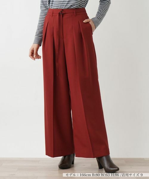 サイズ:9(M),ウエスト70cm,ヒップ104cm,総丈101cm,股上35.5cm,股下68cm,渡り70cm,裾幅60cm