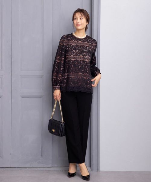 繊細でありながら華やかさを兼ね備えたフラワーレース生地で仕立てたクルーネックブラウス。ディテールにこだわったレースが、優雅な雰囲気を纏い、お洒落心をさりげなくアピール。ふんわりとしたボリュームスリーブは、肩の力を抜いたエフォートレスな雰囲気を演出しつつ、軽やかな動きを生み出します。ネックラインは浅めに設定し、落ち着いた上品な佇まいに。ほどよくゆったりとしたシルエットが身体のラインを優しくカバーし、リラックスして着こなせる一枚です。バックファスナーにより開閉が可能。