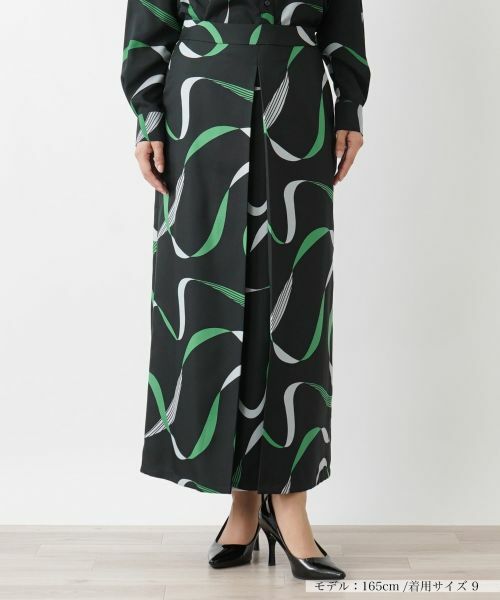 アンティーク調のリボン柄をプリントした、新鮮な印象を与えるデザインのロングスカート。フロント中央にはインバーテッドプリーツを施し、立体的な広がりのある美しいシルエットを作り出しています。バックウエストはゴム仕様で心地よくフィット。サイドホック&ファスナーによりスムーズに着脱が可能。シンプルなトップスを合わせるだけで様になり、お揃いの柄のトップスを合わせたセットアップ風のコーディネートもおすすめです。------------------------------------着用シーズン:秋伸縮性:なし透け感:なしポケット:あり生地の厚さ:やや薄手お取扱い方法:ウォッシャブル(手洗い可)裏地:ありウエスト:後のみゴム-------------------------------------※商品の色味は、撮影場所や光のあたり具合、お客様のお使いの機器により色味が違って見える場合がございます。予めご了承ください。手洗い可酸素系漂白可タンブル乾燥不可つり干し(日陰)アイロン低温120℃までドライクリーニング可ウェットクリーニング(弱い処理)
