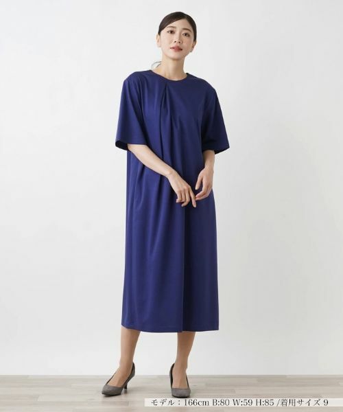 すとんと落ちるようなリラックス感溢れるシルエットでデザインしたサックワンピース。フロントにアシンメトリーなタックを入れ、立体的なニュアンスに仕上げています。無駄な装飾を省いたベーシックな無地で気軽にコーディネートしやすく、デイリーからオフィスカジュアルまで多彩なシーンに対応でき、着回し力にも優れたアイテムです。足元はパンプスでまとめると好バランスのコーディネートに。バックファスナーにより開閉が可能。