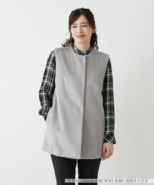 起毛感のあるヘアリーな素材と、柔らかくマットな素材をフロント&バックで切り替えたロングベスト。シンプルなトップスに重ねるだけで、一気に上級者らしいレイヤードスタイルが完成。すっきりとしたIラインシルエットが全体を引き締め、上品でスマートな印象を演出します。フロントはスナップボタン仕様になっており、開閉がスムーズで実用性も兼ね備えています。洗練されたコーディネートを求める大人のワードローブに欠かせない一着です。