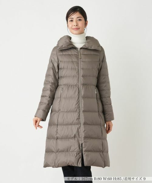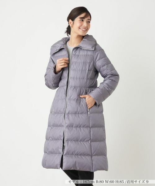 デイリーカジュアルからオフィス通勤まで多彩なシーンで活躍してくれる、ロング丈のダウンコート。ボリューム感たっぷりの襟が小顔効果を発揮。ハイウエストで程よくシェイプしたシルエットが洗練された着こなしを後押しします。軽量で保温性に優れ、これからの季節のワードローブに必須のアウター。フロントはファスナーによりスムーズに着脱が可能です。前ウエスト両サイドには利便性の高いファスナーポケットをレイアウトしています。