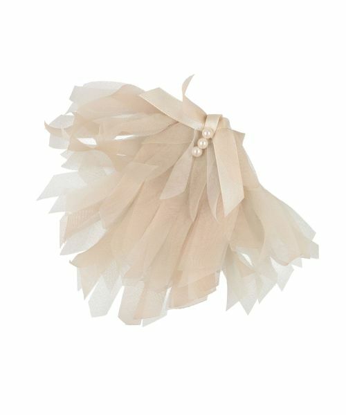 軽やかなオーガンジーリボンを幾重にも重ね、ランダムにあしらった立体的なデザインが魅力のコサージュ。ふんわりとしたボリューム感が、華やかさと存在感を演出し、装いにドラマティックなアクセントを添えます。パール調ビジューが光を受けて上品に輝き、優雅な表情を生み出すのもポイント。シンプルなワンピースやジャケットにプラスするだけで、瞬時にフォーマルなムードへと格上げし、結婚式やパーティーなどの特別なシーンをより華やかに彩ります。