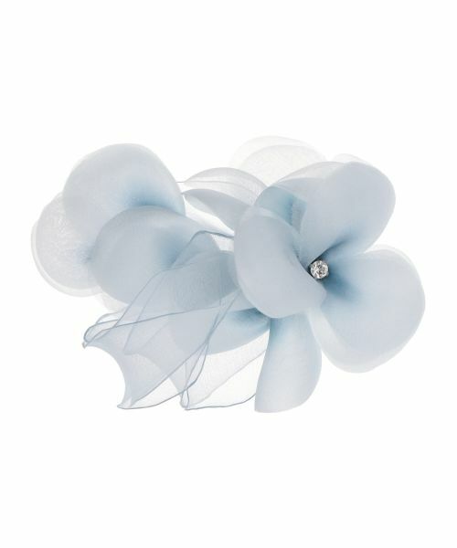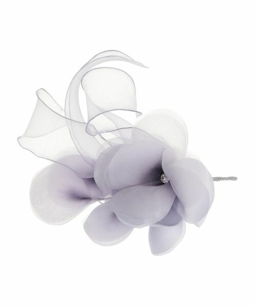 繊細なオーガンジー素材で仕立てたフラワーモチーフのコサージュ。柔らかな質感が特徴のオーガンジーが、ふんわりとした立体感を演出し、優美な雰囲気を醸し出します。控えめながらも上品な輝きを放つビジューがあしらわれ、さりげない華やかさをプラス。結婚式やパーティーなどの特別なシーンにぴったりのアクセサリーで、定番のドレススタイルに添えるだけで一気に華やかな印象へと引き立てます。