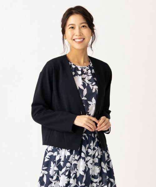 シャープな印象のVネックジャケットはすっきりシルエット。マットな質感とストレッチ性がある着心地の良い素材です。しわになりにくいのも◎。同素材関連商品スカート(品番:0200288)※定価(税込)は、2022年06月29日のセール開始前の店舗における販売価格です。家庭洗濯不可漂白不可タンブル乾燥不可アイロン低温120℃まで石油系溶剤ドライクリーニング弱ウェットクリーニング不可