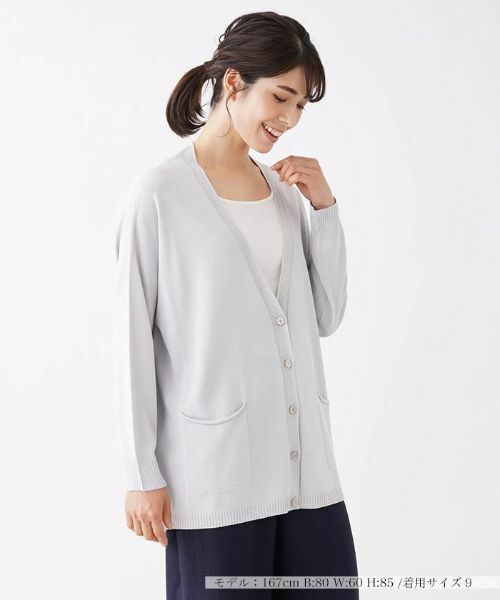 しっとりとした優しい肌触りのハイゲージニットカーディガン。ゆるりとした落ち感シルエットに大人の余裕を感じるアイテムは、春から秋までロングタームで活躍してくれる仕上がりが嬉しい。夏の冷房対策等にも便利なアイテム。※定価(税込)は、2022年06月29日のセール開始前の店舗における販売価格です。 家庭洗濯不可漂白不可タンブル乾燥不可アイロン低温210℃まで石油系溶剤ドライクリーニング弱ウェットクリーニング不可