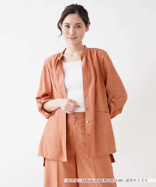 ネックラインに施したタックやサイドポケット、スリーブのタブベルトなど、ディテールにこだわりの詰まったスタンドカラーブラウス。コーディネートのアクセントになる鮮やかなカラーバリエーションで、シンプルなボトムスとのコーデもサマになる1枚。※定価(税込)は、2022年06月29日のセール開始前の店舗における販売価格です。家庭洗濯不可漂白不可タンブル乾燥不可アイロン低温120℃まで石油系溶剤ドライクリーニング弱ウェットクリーニング不可