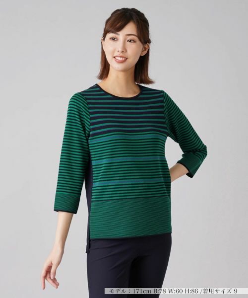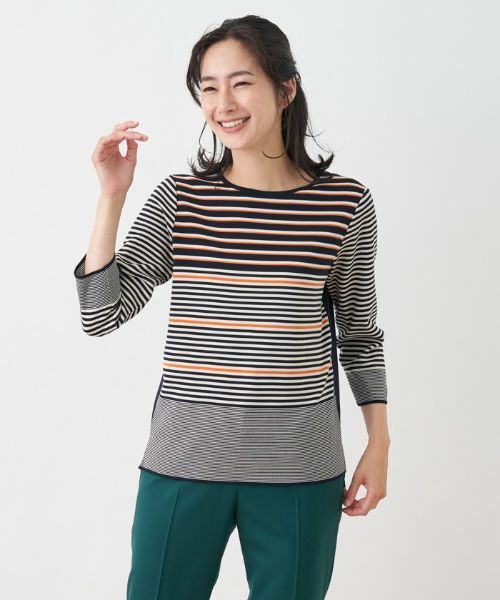 リズミカルなマルチボーダーが視線を惹きつける、クルーネックニットプルオーバー。バックを無地で切り替えてメリハリのあるルックスに。手元に抜け感を演出してくれる7分袖、身頃はすっきりとしたシルエットで仕上げているので、ボトムスともバランスよくコーディネートできます。------------------------------------ 着用シーズン:秋 伸縮性:あり 透け感:なし ポケット:なし 生地の厚さ:薄手 お取扱い方法:ウォッシャブル(手洗い可)裏地:なし -------------------------------------※商品の色味は、撮影場所や光のあたり具合、お客様のお使いの機器により色味が違って見える場合がございます。予めご了承ください。【※定価(税込)は、2023年1月2日のセール開始前の店舗における販売価格です。】 手洗い可酸素系漂白可タンブル乾燥不可つり干し(日陰)アイロン低温160℃までドライクリーニング可ウェットクリーニング(弱い処理)