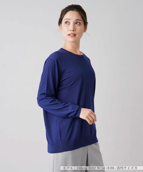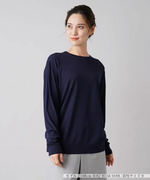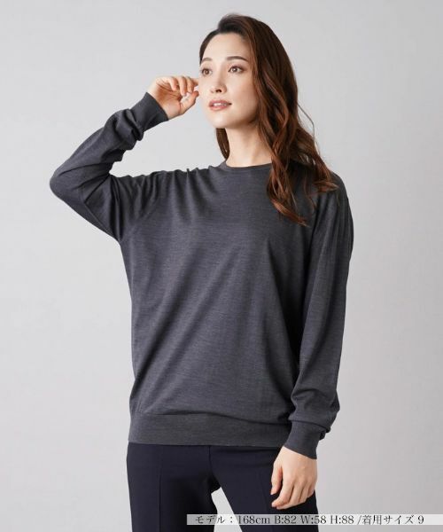 身体のラインを拾わないゆったりとしたシルエットで、リラックス気分なスタイリングに仕上がるクルーネックニットプルオーバー。肩ラインを落としたドロップショルダー&バックラグランスリーブでストレスフリーなデザインに。ハイゲージ編みで程よい軽やかさをキープしているから、秋から春までロングシーズン着用できます。シンプルな無地でボトムスとも合わせやすい1枚です。