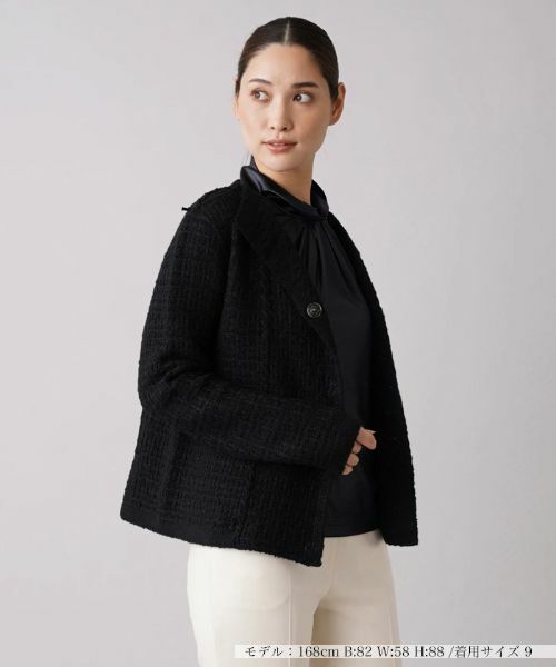 存在感のある襟が特徴的なカラードカーディガン。ざっくりと編まれたニットの風合いが楽しめる1着です。深めに合わせた比翼仕立てのフロントはスナップボタン仕様でスムーズに着脱可能。後ろ裾両側にはスリットを入れ、絶妙なバランスの抜け感をプラス。スタンダードな丈感でボトムスともコーディネートしやすく、着回し力の高いアイテムです。