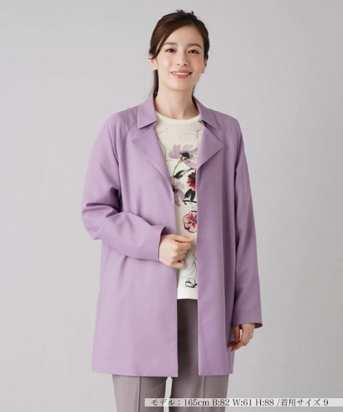 さらりと軽やかに羽織れるロングジャケット。袖はラグランカットで肩肘張らないリラクシーな着心地を叶えました。ヒップが隠れる程度のレングスで体型カバーにもひと役買ってくれそうです。フロントはフック留めで仕上げ、すっきりとした印象に。お手持ちのカットソーやTシャツ、ブラウスとレイヤードするだけでワンランク上の洒脱な着こなしが楽しめます。