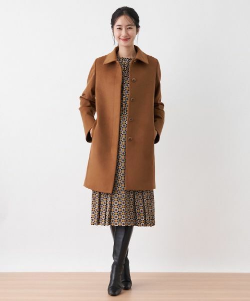 上品な光沢を湛えるハイクオリティな素材を使用した、ミディ丈のステンカラーコート。フロントはボタンを隠した比翼仕立てですっきりとデザインしているから、オフィシャルなシーンでの装いにもスマートにマッチ。袖口部分の切り替えがさりげないアクセントに。合わせるインナーやボトムスを選ばずにコーディネートしやすく、トレンドに左右されることなくタイムレスに活躍する冬のアウターです。