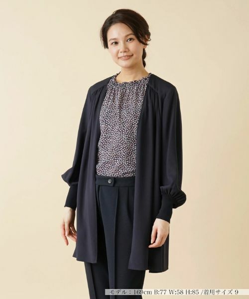 ふわっと羽織れるトッパータイプのカーディガン。フロントはノーボタン仕様ですっきりとした印象に。量感たっぷりのボリュームスリーブや柔らかなシルエットを作り出すギャザーがポイント。袖口はリブで切り替え、心地よいフィット感をもたせました。無駄な装飾を省いたミニマルなデザインでコーディネートに取り入れやすい一枚です。