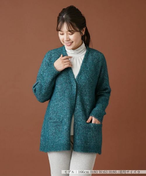 起毛感のあるアルパカ混メランジニットの独特な風合いが楽しめるカーディガン。いつものコーディネートに重ねるだけでシーズンらしい温もり溢れるレイヤードスタイルが叶います。ポケット裏地に配色を効かせ、直接見えない部分もこだわりを感じさせるデザインに。オーバーサイズなシルエットなのでゆったりと羽織りやすく、ライトアウターとしても重宝しそうなアイテムです。フロントはスナップボタンにより開閉が可能。