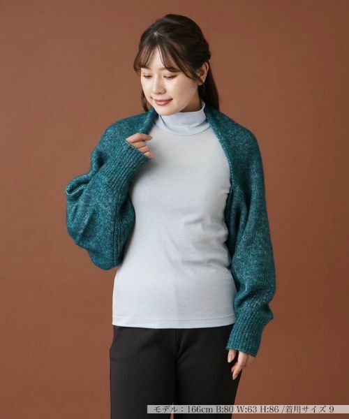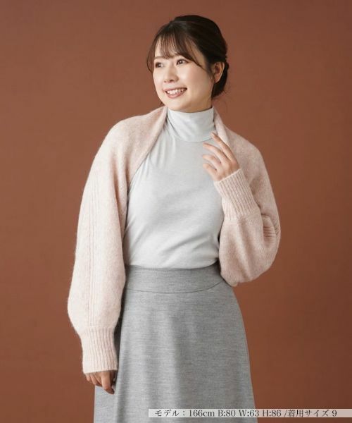 起毛感のあるアルパカ混メランジニットの独特な風合いが楽しめるボレロカーディガン。ふんわりとしたシルエットと短めの丈感がさりげなく大人の可愛らしさを演出。いつものコーディネートに重ねるだけでシーズンらしい温もり溢れるレイヤードスタイルが叶います。ニットやカットソーはもちろん、ワンピースとも好相性のアイテムです。