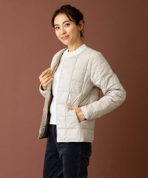 軽量ポリエステル素材を表地に使用したTAION×LIMONTA EAST×Leilianのコラボダウンジャケット。裾に施したレリアンモノグラム刺繍がさりげないポイントになっています。飽きのこないシンプルなデザインで様々なコーディネートに取り入れやすい一着です。フロントはスナップボタンによりスムーズに着脱が可能。袖口はゴム仕様とし、心地よいフィット感をもたせました。前ウエスト左右にはジップポケットをレイアウトしています。端境期のアウターとして、寒さの厳しい季節にはセカンドレイヤーのインナーダウンとしてフレキシブルに活躍してくれます。