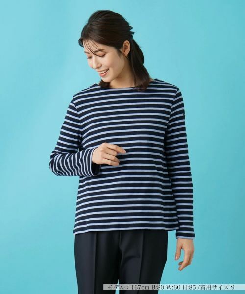 フランス Le minor(ルミノア)×Leilianコラボレーション企画のボーダーインナー。レリアンオリジナルのカラー配色です。コットン100%のフライス組織のジャージー素材を使用した、なめらかで肌触りの良いストレスフリーなデザインです。