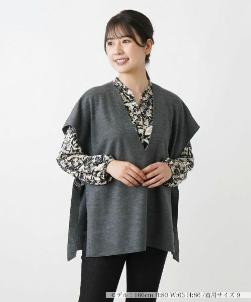 Vネックのプルオーバータイプのジレ。ゆったりとしたリラックスシルエットと、サイドのベルト&Dカンがデザインポイントです。厳選された※「Super100'sウール」を使用した高級感のある圧縮ジャージー素材です。