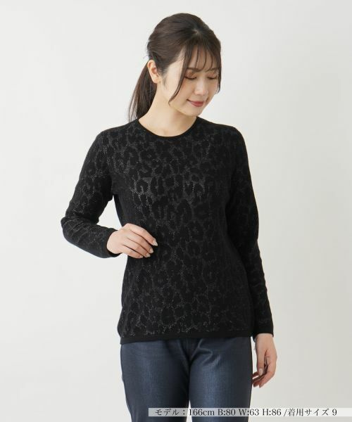 シャドーで表現された、大ぶりのレオパード柄がさりげなく個性を引き立てるカットソー。ラメの煌めきを散りばめ、ラグジュアリーな雰囲気を醸し出しています。ネックラインは適度に開きをもたせ、絶妙なバランスの抜け感を演出。遠目からは無地にも見え、すっきりとしたシルエットでコーディネートしやすく、一枚での着こなしはもちろん、ジャケットやコートなどのアウターとの重ね着でも重宝しそうです。