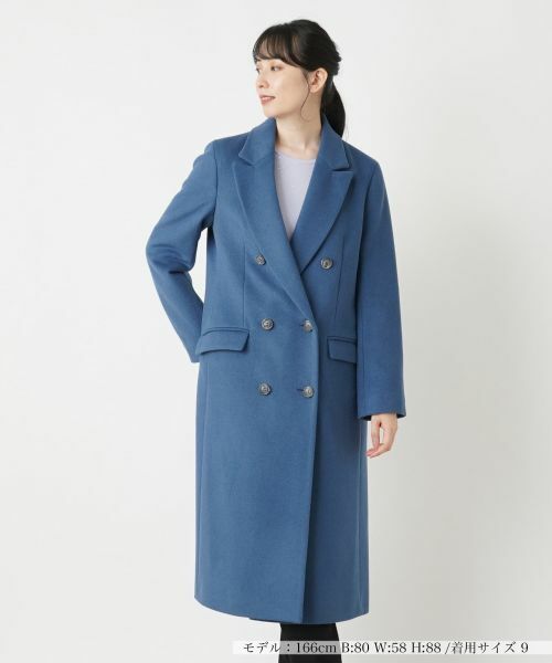 アンゴラをブレンドした厚手の素材で仕立てた、ダブルブレステッド仕様のチェスターコート。存在感のあるカラー&ラペルが顔周りを洗練された印象に引き立て、表情のあるマーブルボタンがこだわりを感じさせるエッセンスに。後ろ裾は深めのセンターベント仕様で動きやすさにも配慮しています。オンオフを問わず多彩なシーンで活躍するアウターとなっており、足元にブーツを合わせても、秋冬シーズンらしいスパイシーさが際立ちます。------------------------------------着用シーズン:冬伸縮性:なし透け感:なしポケット:あり生地の厚さ:やや厚手裏地:あり-------------------------------------※商品の色味は、撮影場所や光のあたり具合、お客様のお使いの機器により色味が違って見える場合がございます。予めご了承ください。家庭洗濯不可漂白不可タンブル乾燥不可アイロン低温120℃まで石油系溶剤ドライクリーニング弱ウェットクリーニング不可