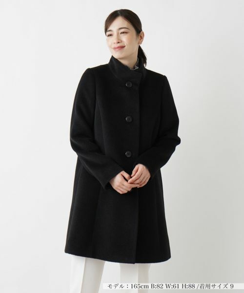 アルパカをブレンドした、厚手の生地で仕立てたスタンドカラーコート。高品質な素材感がもたらすしなやかな手触りと保温性が、着るたびに心地よさを実感させてくれます。緩やかに広がりをもたせた美しいシルエットが大人の女性らしい佇まいを演出。落ち着いたシックな色合いでデザインしているのでインナーやボトムスともコーディネートしやすく、オフィス通勤からパーティなどのエレガントなシーンまで汎用性に優れたアウターです。
