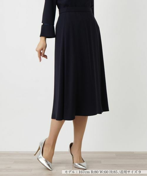 巧妙なパターンメイクによって仕立てられた、ミニマルな無地デザインのミディアム丈フレアスカート。シンプルながらも洗練されたシルエットは、様々なトップスと相性がよく、幅広いスタイリングに対応します。ウエスト部分には程よい伸縮性が備わっており、心地よくフィットしながらも快適なはき心地を実現します。スナップボタンとサイドホック、ファスナーよりスムーズに着脱可能です。
