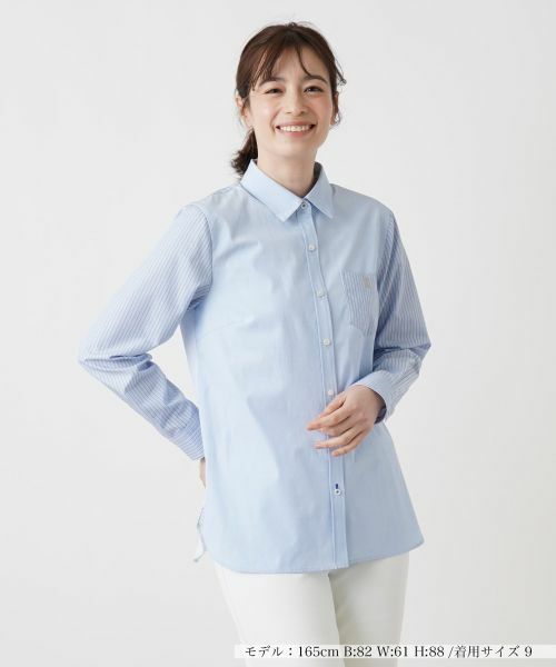 爽やかなサックスブルーを基調としたデザインが目を惹くシャツ。袖やバックヨーク、左胸のポケット部分に施されたストライプ柄が遊び心を添えるアクセントに。ボタンフロント仕様で着脱が簡単なだけでなく、きちんと感をプラス。軽やかな風合いの素材を使用しているため、オールシーズン快適な着心地を実現します。ディテールにまでこだわった仕立てが、上品で洗練された印象を演出。カジュアルなデニムスタイルから、オフィスのきれいめコーディネートまで幅広い着こなしにマッチします。