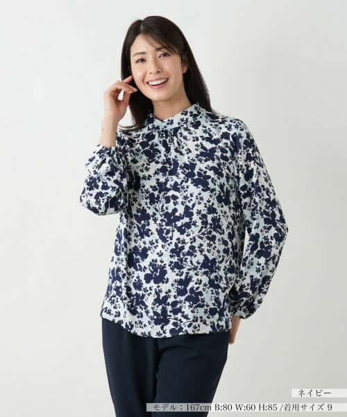 上品なフラワープリントが施されたエレガントなデザインのブラウスです。モノトーンカラーの花柄がシックな印象を与え、クラシカルな雰囲気を演出します。首元にはタイディテールがあり、結び方次第で異なるスタイリングを楽しめます。程よいゆとりのあるシルエットで、快適な着心地を実現。オンオフ問わず活躍し、パンツやスカートと合わせて洗練されたコーディネートが完成します。女性らしさとモード感を兼ね備えた一着です。※定価(税込)は、2025年6月27日のセール開始前の店舗における販売価格です。手洗い可酸素系漂白可タンブル乾燥不可つり干し(日陰)アイロン低温120℃までドライクリーニング可ウェットクリーニング(弱い処理)