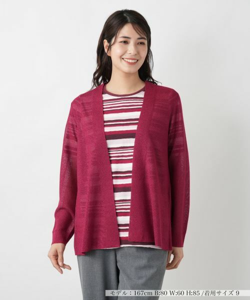 さらりと羽織るだけで上級者らしいコーディネートが完成するトッパーカーディガン。ほんのりと透ける繊細な編地が春夏らしい軽やかさを演出。通気性に優れたニットは肌にまとわりつかず、暑い季節にも快適な着心地を叶えてくれます。フロントはボタンレスで仕立て、縦のラインをすっきり強調するデザインに。Tシャツやブラウスにさらっと重ねるだけで、気負わないレイヤードスタイルが簡単に完成します。