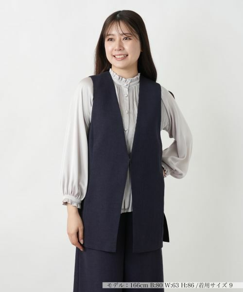 身体のラインに沿うようなIラインシルエットのVネックベスト。縦の印象を強調し、すっきりとした佇まいを演出します。フロントホック仕様でミニマルに仕上げ、余計な装飾を省いたことでシャープで洗練された印象に。裾にはサイドスリットを施し抜け感をプラス。さりげなく軽さを出しつつ、動きに合わせて美しいシルエットが生まれます。前ウエスト両サイドにはスリットポケットをレイアウト。ヒップを自然にカバーするやや長めの丈感で全体のバランスもスマートに整えます。