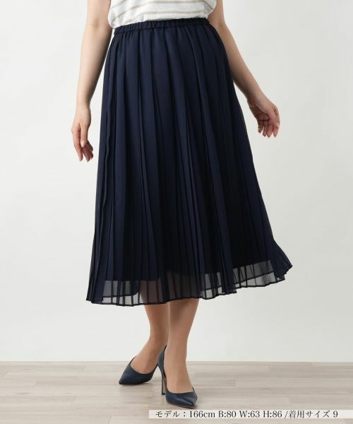 ほんのり透け感のあるシアー素材で仕立てたプリーツスカート。繊細に施されたプリーツがエレガントな表情と動きのあるシルエットを演出。ウエストは総ゴム仕様で快適なフィット感を叶え、リラクシーなはき心地に。トップスをタックインすれば、ウエストラインがすっきりと引き立ち、スタイルアップ見せ効果も期待できます。ニュアンスのある美しいカラーリングも相俟って、大人の女性らしさを引き立てる一枚。カジュアルからきれいめまで幅広いコーディネートに活躍します。