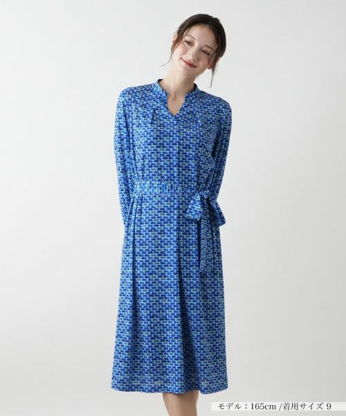 まるでアートピースのような印象的なプリントが目を惹くフレアワンピース。デコルテをすっきりと見せるスキッパーネックが、涼やかな抜け感を演出。袖口にはブランドのロゴを刻印したさりげなく光るエンブレムボタンをトッピング。ウエストの高め位置で共布ベルトをマークすれば、自然なメリハリが生まれ、スタイルアップ見せ効果も抜群。生地にはストレッチが効いているので着こなしやすく、アンダースカート付きで透け感も気にならず快適な着心地をサポート。