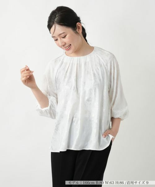 さりげない輝きが、リュクスな存在感を放つクロップドスリーブのブラウス。全体に施されたタックがふんわりとした柔らかなニュアンスを生み出し、動くたびに優雅な表情を演出。袖には程よいボリュームをもたせ、リラクシーなシルエットを実現しています。バックネックには涙あきのデザインを施し、ボタン開閉が可能。デニムやワイドパンツと合わせてカジュアルに、ロングスカートでまとめてエレガントにも楽しめるアイテムです。