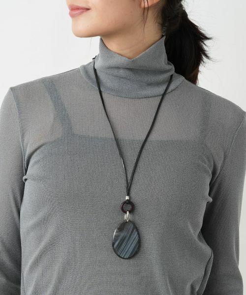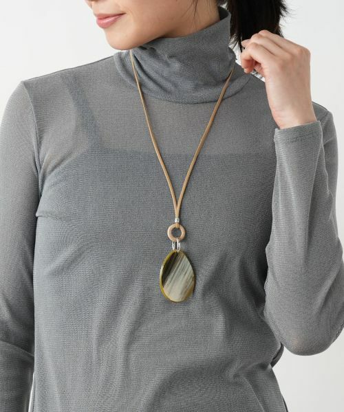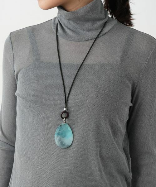 大ぶりドロップシェイプのマーブルモチーフが目を惹くコードネックレス。独特のマーブル模様が表情豊かなニュアンスを醸し出し、シンプルながらも個性的なフォルムも相俟ってコーディネートにさりげないアクセントをプラス。カットソーやブラウス、ニットなど、さまざまなスタイルに馴染みつつ、ひと味違ったこだわりを感じさせる一本に仕上げました。アジャスター付きで長さの調整も行えます。