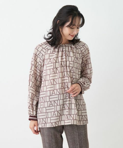 「LEILIAN」の文字をモノグラム風にアレンジした柄プリントが新鮮さを感じさせるチュニックブラウス。シワになりにくく、パウダリーなタッチが特徴的なポリエステル素材を使用しています。柄は斜線のようにロゴを描くことでソフトで着やすい印象に仕上がります。袖口はボタンにより開閉が可能。バックファスナー付き。付属の同柄スクエアスカーフを首周りに巻けば、コーディネートの絶妙なアクセントに。